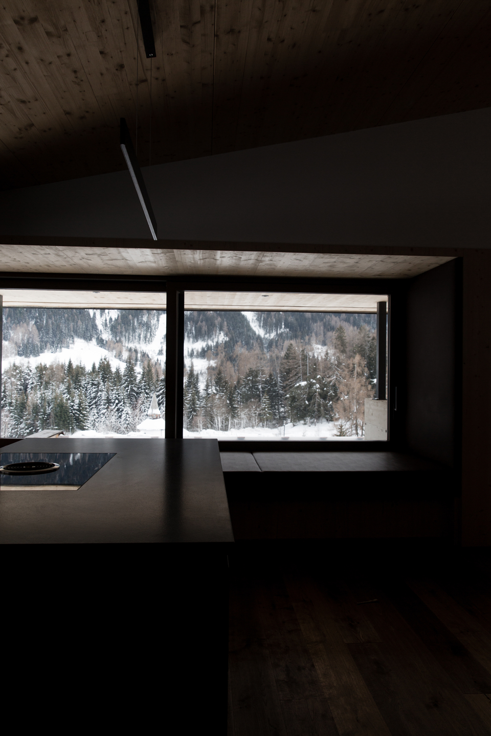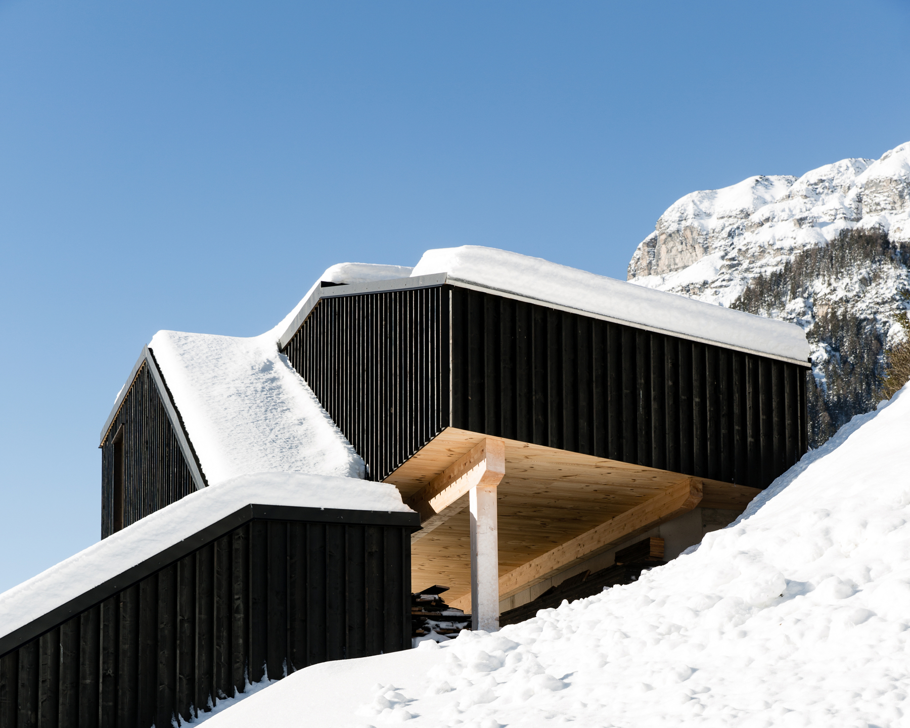 ein neuer kleiner baukörper aus holz, über die hangkante auskragend,