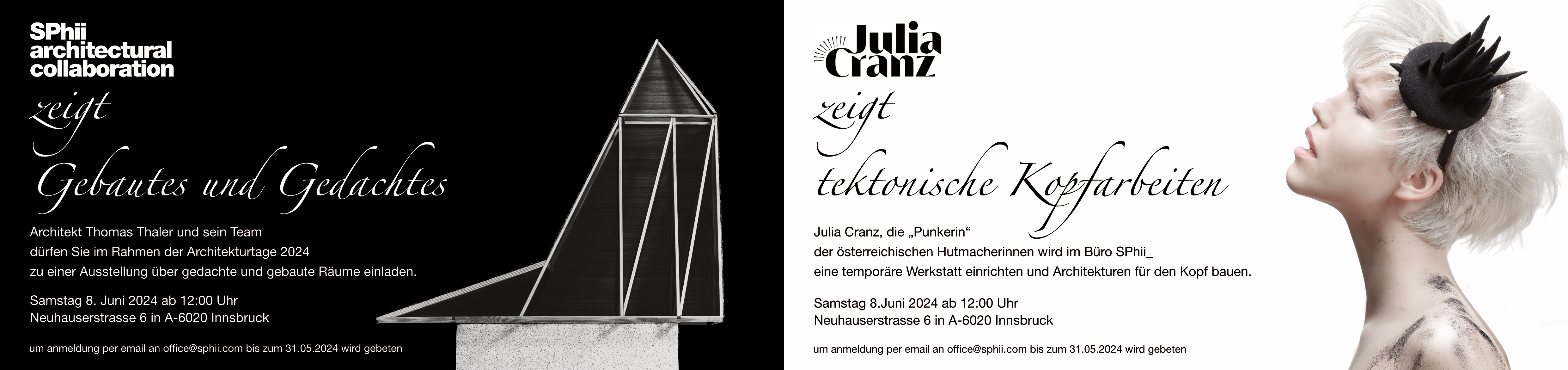 Wir zeigen Gebautes und Gedachtes und weben dazwischen tektonische Kopfarbeiten der Hutmachermeisterin Julia Cranz ein.